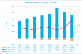 2.3 仪器仪表行业历年1-9月利润、亏损比较